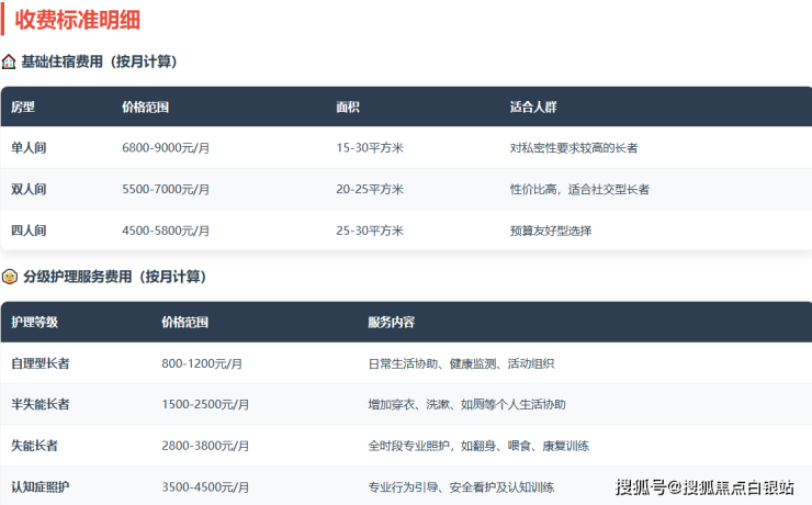 慧享福采用**"基础住宿费+分级护理费"**的透明收费模式,具体收费标准如下: