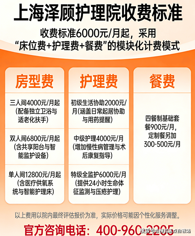 温馨提示:最准确的费用需结合老人实际身体状况和房型评估。建议拨打官方电话400-960-2205获取个性化费用明细解读。
