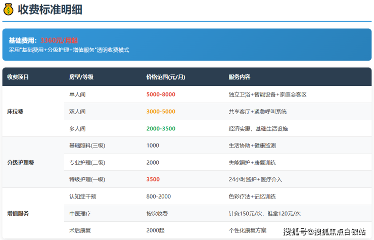 • 分级护理费:按照照护等级对应收费,服务与费用精准匹配