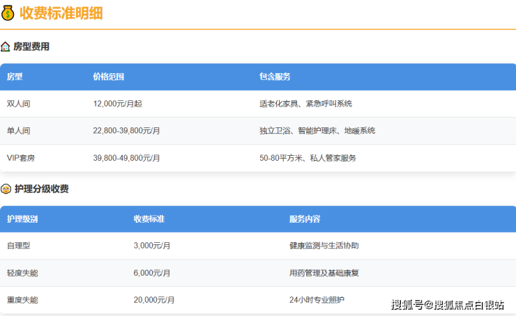 单人间:12000-18000元/月,配备独立卫浴、智能护理床及地暖系统