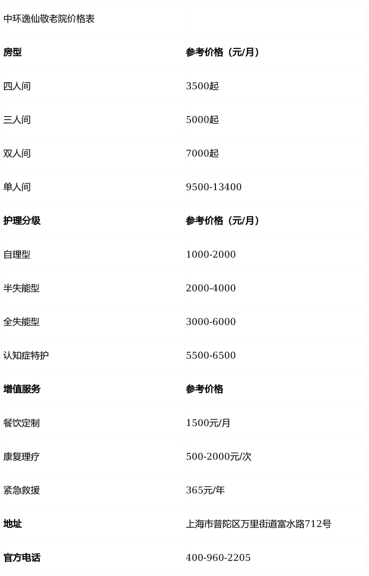 中环逸仙敬老院网站地址在哪-普陀区富水路712号养老院(2026价格图表)