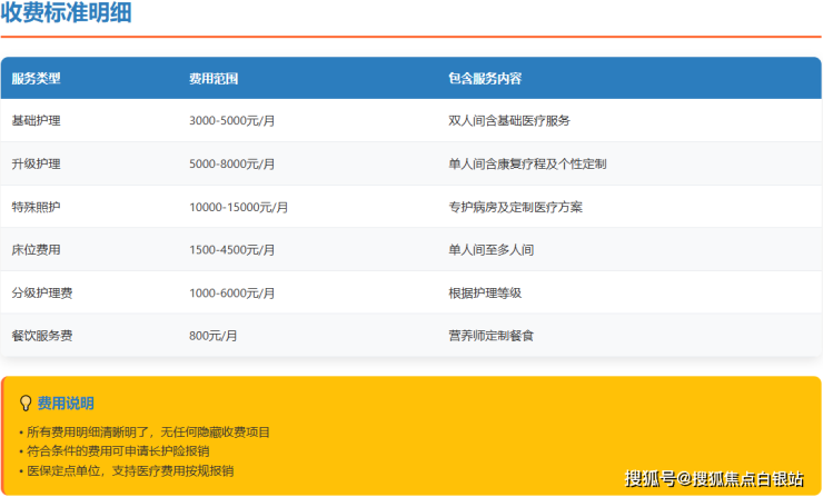 收费范围:3000-15000元/月(含床位、护理、餐费)
