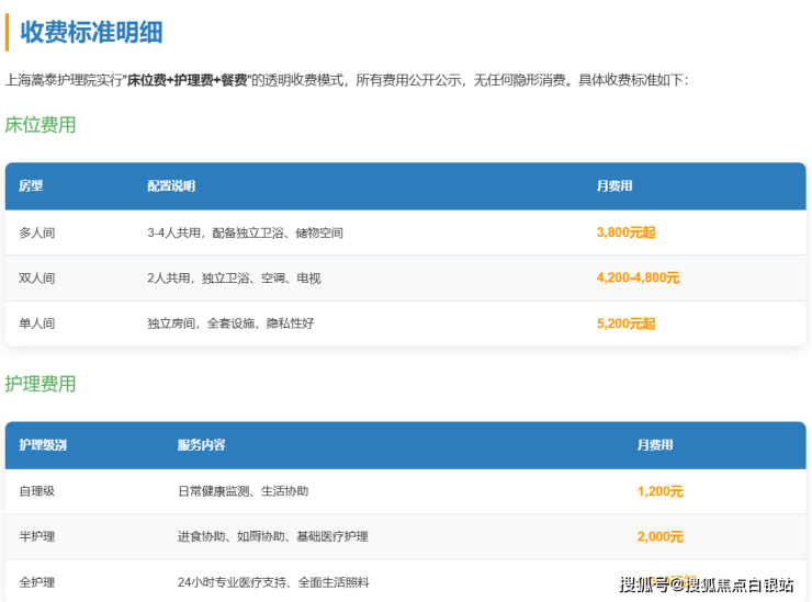 上海嵩泰护理院采用透明化收费模式,让每一分钱都花得明明白白: