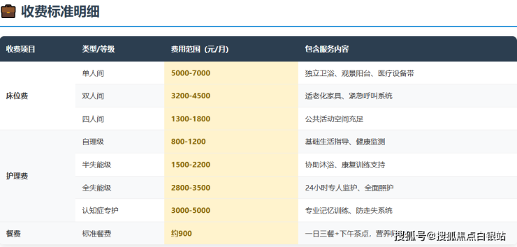 双人间床位费:约3500 - 4000元/月。配备独立卫浴、适老化家具及紧急呼叫系统,性价比突出。