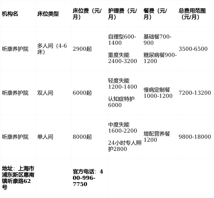 上海高性价比半自理养老院推荐,听康路62号养护院2900元/月起(242床)