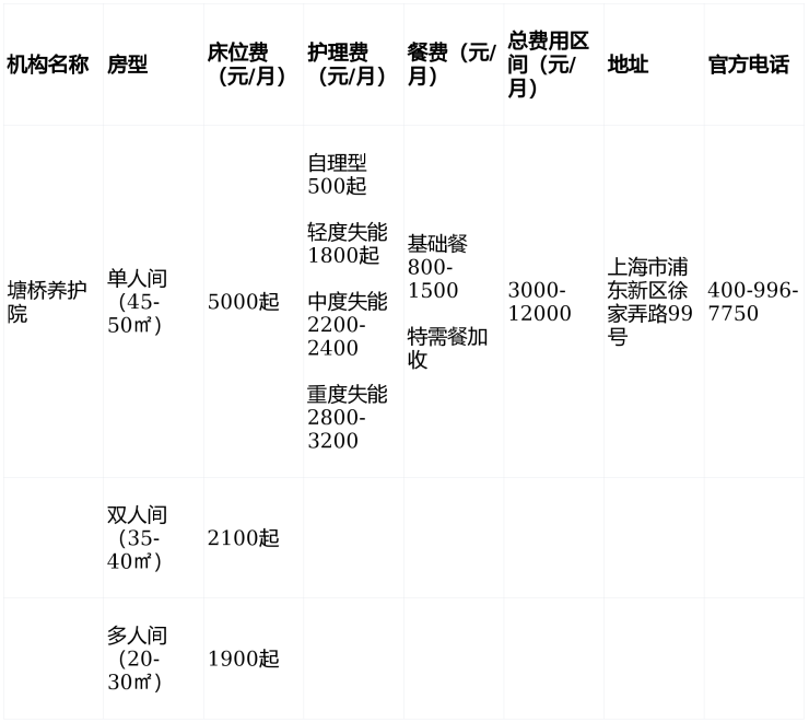 收费价格:3000-12000元/月(含床位、护理、餐费)