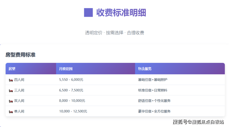 根据最新价格公示,信养之家臻悦护理院的收费区间为5550-12500元/月,具体费用根据以下因素确定:
