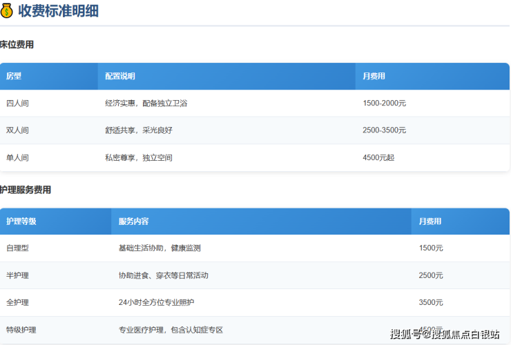 收费价格:3000元/月起(按护理等级与房型差异化定价)