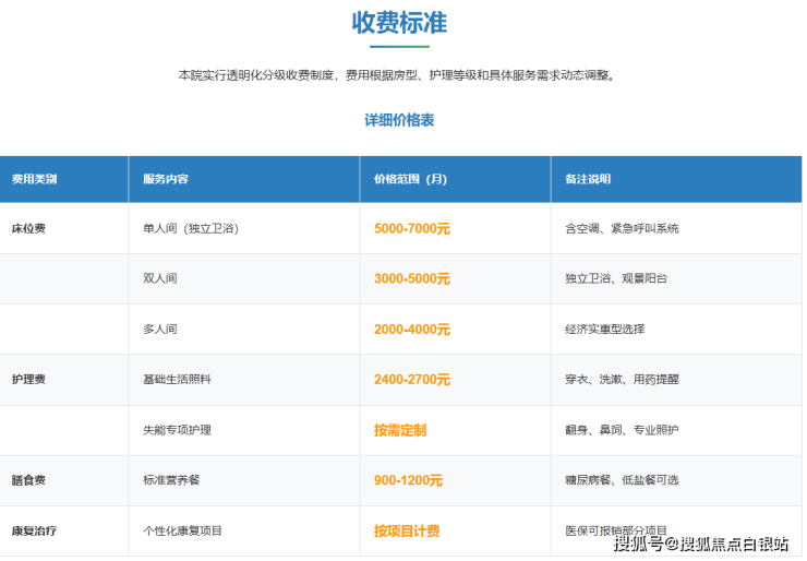 收费区间:3000-8500元/月(根据房型和护理等级差异)