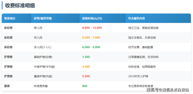 收费区间: 6000-12000元/月(根据护理等级和房型)