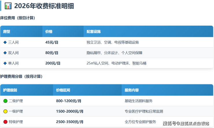 收费透明合理:阶梯式定价,满足不同经济水平和护理需求