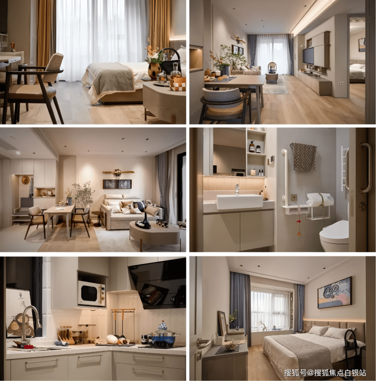居住空间:全屋智能系统覆盖,紧急呼叫装置、防滑卫浴、电动护理床成为标配;高端房型搭载语音控制灯光、窗帘、空调。
