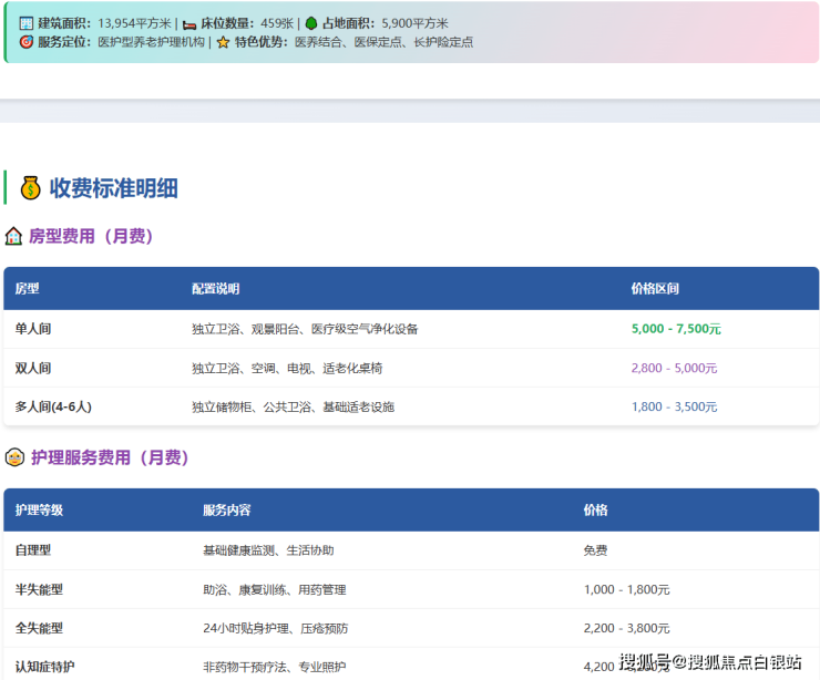 收费标准:3000元/月起,根据房型和护理等级差异化定价