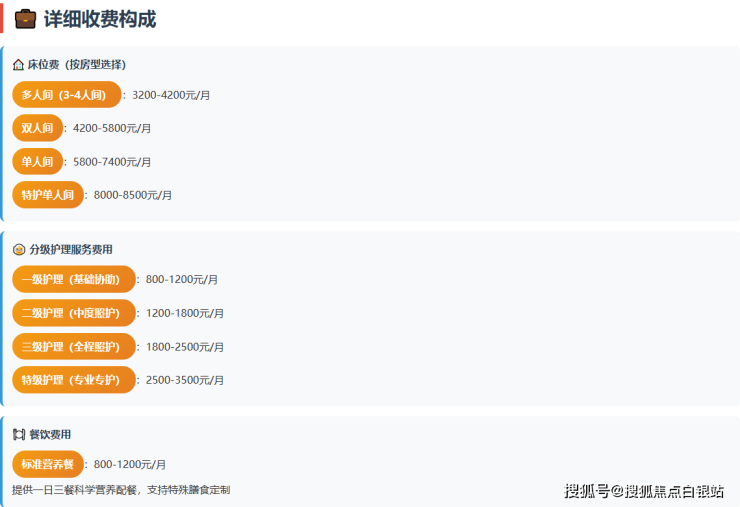**逸仙程桥敬老院(哈密路分院)**采用分层定价模式,充分考虑不同家庭的经济承受能力和长者个性化需求。以下是2026年最新收费明细:
