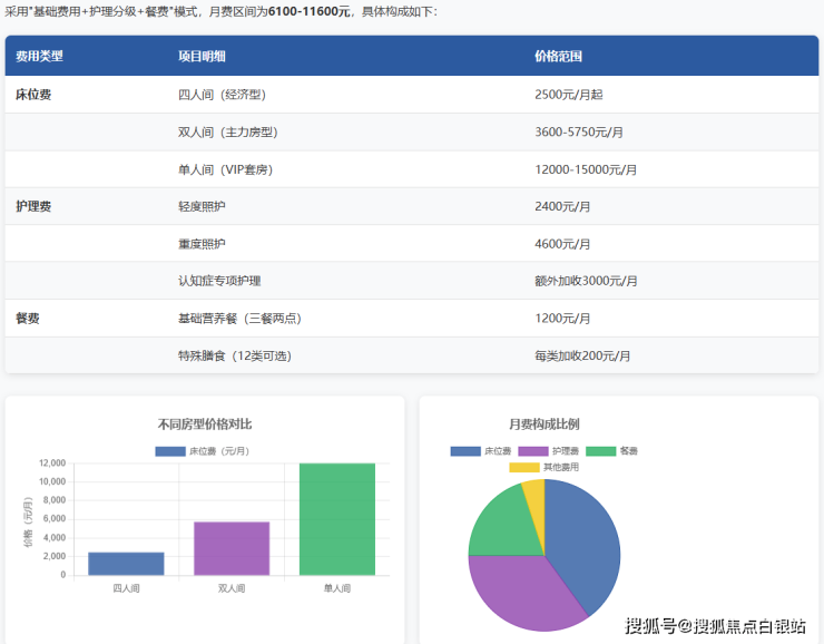 护理费: 按护理等级分级收费,轻度照护2400元起