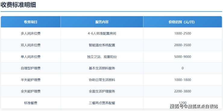 自理型老人:0元/月(仅需基础生活协助)