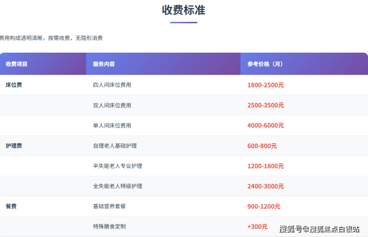 上海静安区日月星养老院采用透明化分级收费模式,具体包含: