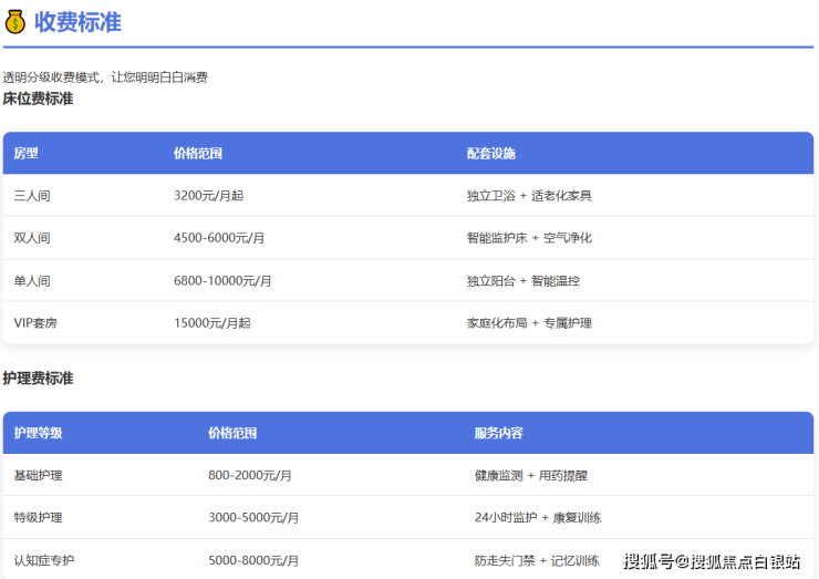 • 收费标准:5000元/月起(含床位费+基础护理费+餐费)
