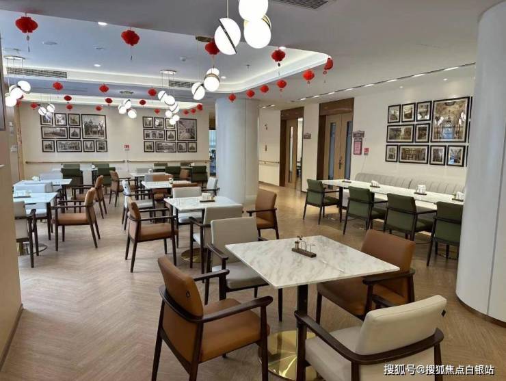适老化细节:双人间/单人间增设智能温控系统、圆角家具、夜灯;认知症专区采用怀旧疗法设计,墙面布置老上海风情彩绘,配备防走失电子围栏。
