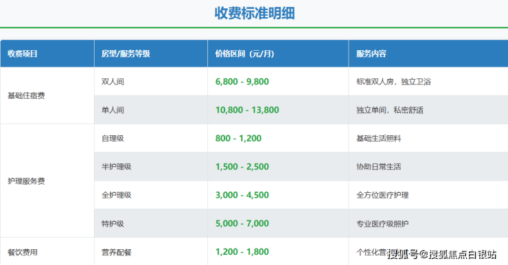 • 中级护理型:6000-9000元/月(适合半自理/半失能长者)