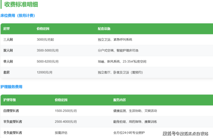 福泉养护院采用分层透明收费模式,主要包含三大类费用: