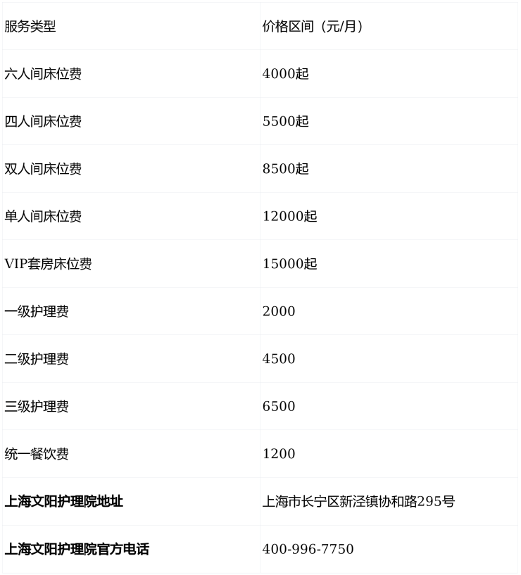 上海文阳护理院电话400-996-7750,地址位于上海市长宁区新泾镇协和路295号,收费4000元/月起,收住失能失智、术后恢复、慢性健康管理及临终关怀长者,提供825张标准化床位与全周期智慧化服务,是沪上医养结合的标杆选择。