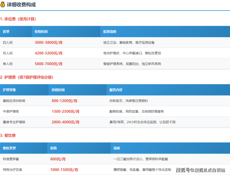 备注:以上费用为参考区间,实际费用需根据长者具体身体状况、护理需求和房型选择进行个性化测算。强烈建议通过官方渠道获取精确报价。