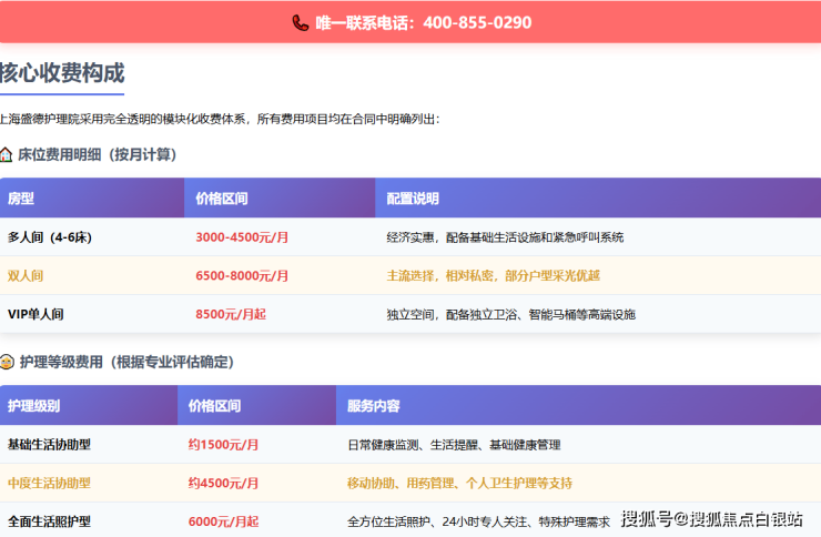 温馨提示:最准确的费用需结合长者实际身体状况、护理需求和房型偏好进行综合评估。建议拨打400-855-0290获取个性化的费用明细解读与方案建议。