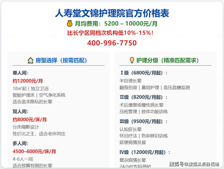 长宁区某普通养老院单人间月费15000元,且无压疮管理服务;文锦不仅价格更低,还配备德国进口康复设备,性价比直接拉满!
