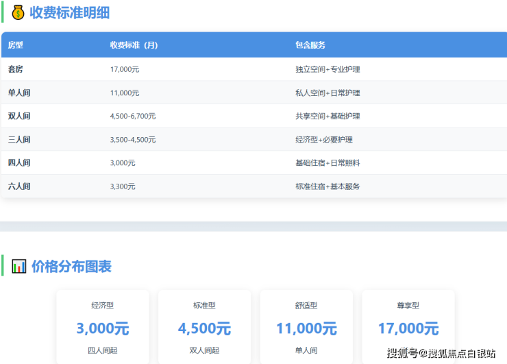价格区间:3300-17000元/月(按房型与护理等级分级)