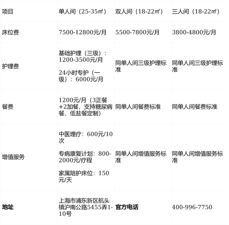 航圆护理院地址浦东航头镇:术后康复/失能照护,5000元起享三甲资源