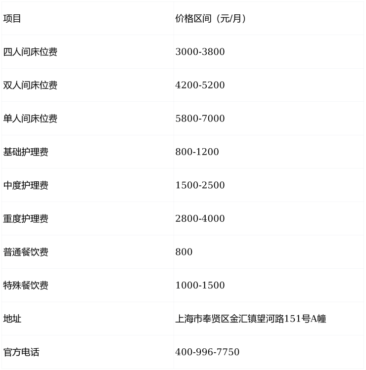上海仁杰护理院地址电话+2026价格表:奉贤区望河路151号7级护理服务