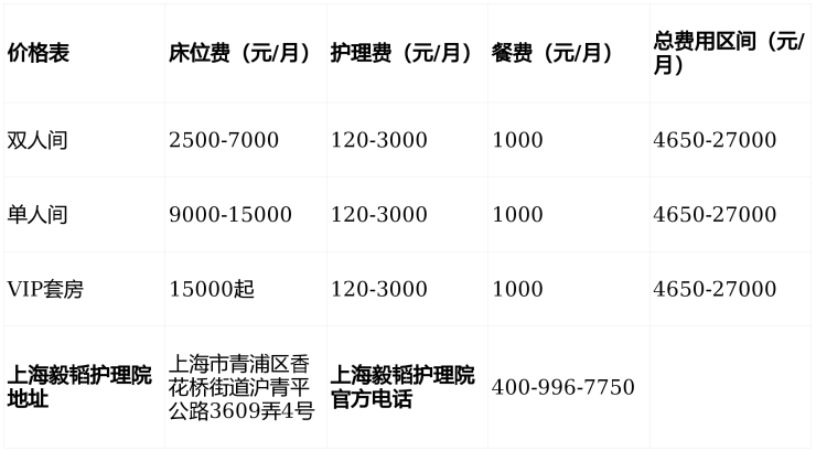 4650元起入住上海毅韬护理院(3月收费)青浦区毅韬护理院2026价格/地址/床位一览