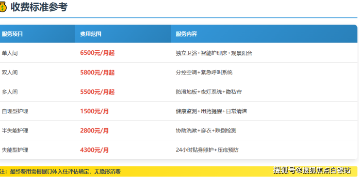 以上价格为2026年参考区间,最终费用需根据具体入住评估确定