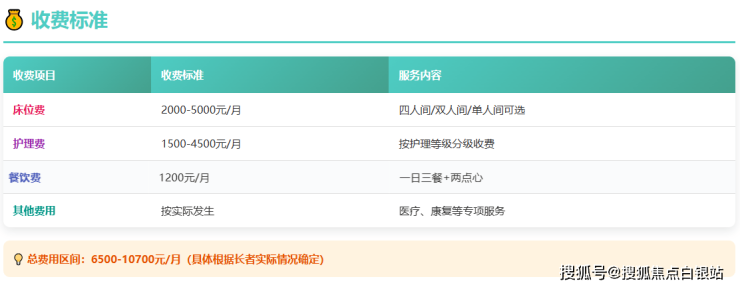 收费区间:6500-10700元/月(根据护理等级个性化定价)