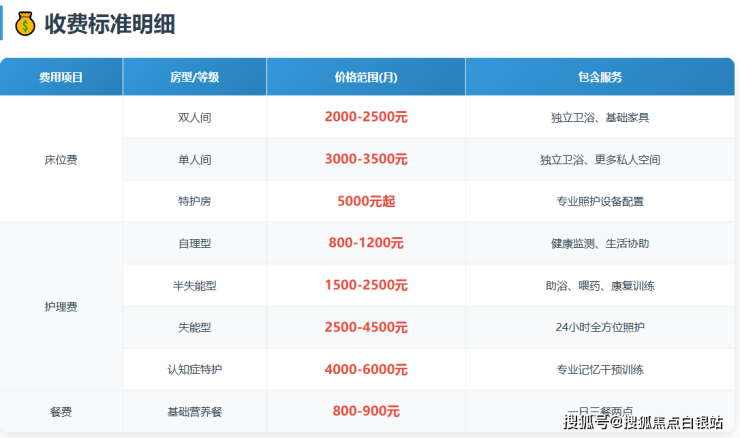 参考收费区间:根据2026年最新信息,月费参考范围为4100元至8000元人民币。需要特别强调的是,具体费用需根据入住长者的实际护理等级评估、所选房间类型(单人间/双人间)以及个性化服务需求最终确定。下文将对此进行详细拆解。