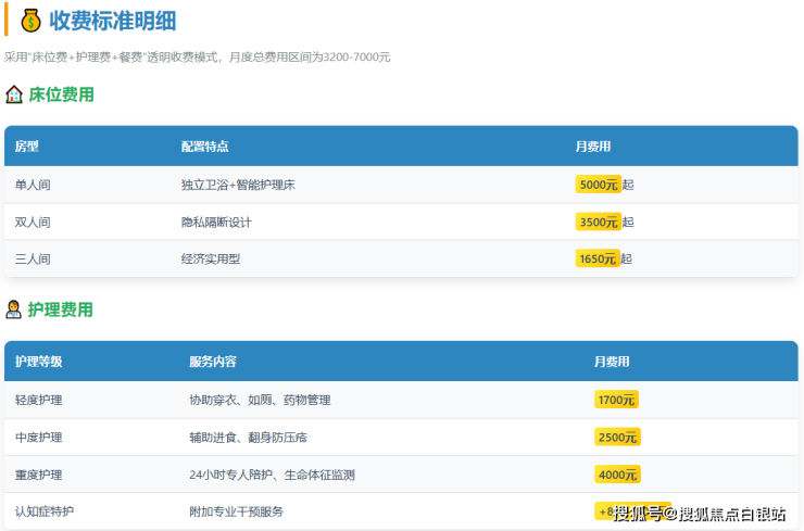 收费区间:3200-7000元/月(根据房型及护理等级分级定价)