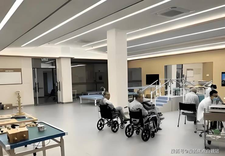 公共区域:康复训练室配置电动起立床、平衡训练仪及上下肢康复机器人;阅览室藏书超5000册;多功能厅支持文娱活动与健康讲座。