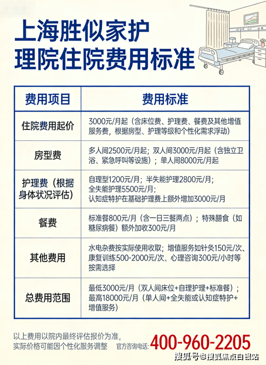 💡 温馨提示:最准确的费用需结合老人实际身体状况和房型评估。建议拨打 400-960-2205 获取个性化费用明细解读!
