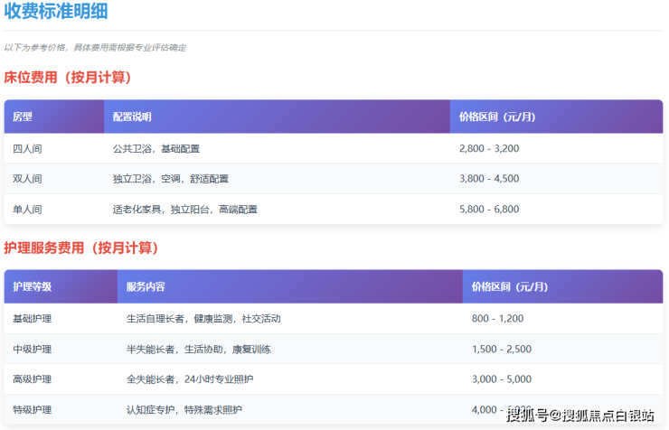 服务特色:专业护理、智慧养老、透明收费