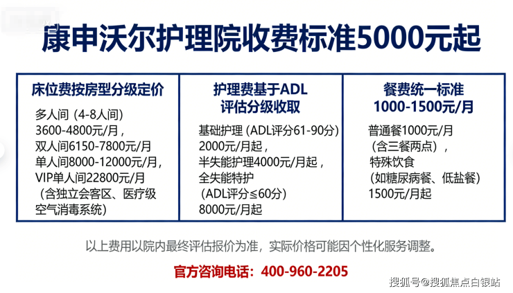 2025康申沃尔护理院双人间收费多少?5000元起自理到失能全等级核算标准