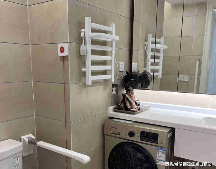 适老化细节:走廊宽度达到2.4米,满足轮椅和担架通行需求;地面铺设防滑地胶,每3米设置休息座椅;卫浴区配备L型安全扶手、恒温花洒(水温波动控制在±1℃内)、电动升降马桶;床头紧急呼叫系统直通护理站,响应时间不超过30秒。