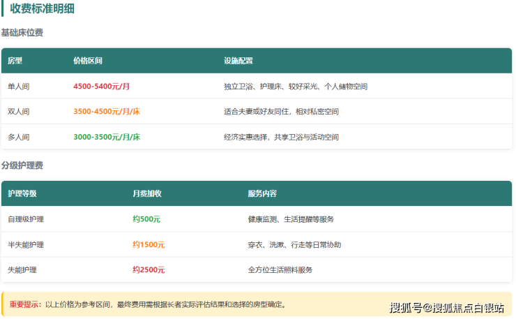 💰参考收费标准:3300元 - 5400元/月(此为综合月费区间,具体根据所选房型及护理等级精确计算)