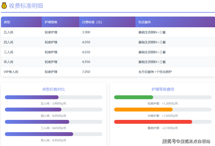 双人间:4500-8000元/月(含独立卫浴、智能护理床)