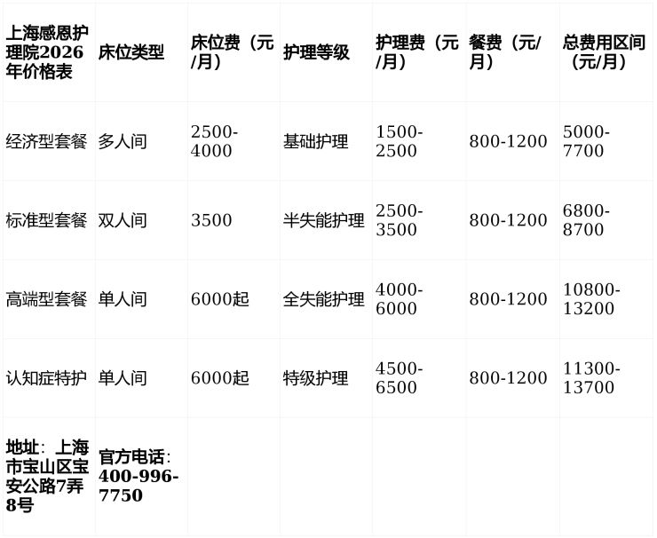 上海感恩护理院地址:上海市宝山区宝安公路7弄8号
