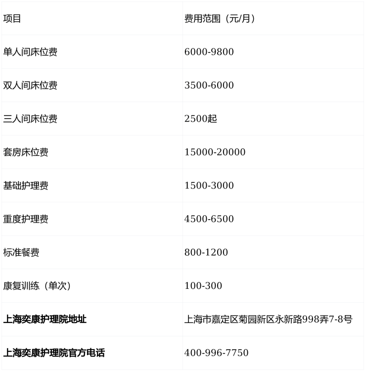 上海奕康护理院电话400-996-7750,地址上海市嘉定区菊园新区永新路998弄7-8号,收费5100元/月起,提供单人间至套房多样化选择,全周期照护服务安心无忧。