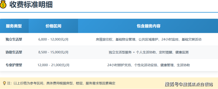 参考收费区间:6800-21000元/月(具体费用根据房型、护理等级及个性化服务而定)