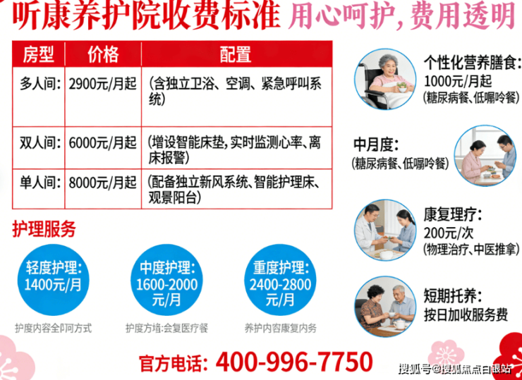 价格仅供参考,具体费用需结合长者健康评估与房型选择,欢迎拨打400-996-7750获取个性化报价。