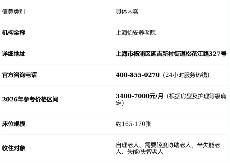 上海怡安养老院(地址:松花江路327号,电话:400-855-0270)以其明确的地理位置、公开透明的价格梯度(3400-7000元/月)和清晰的服务框架,为上海家庭提供了一个信息透明、可供比较与考察的养老选项。在老龄化社会背景下,信息的真实性与透明度是建立信任的第一步。