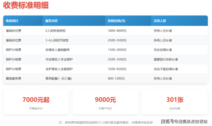 单人间:6000元/月起(配备独立卫浴+智能护理床+24小时新风系统)